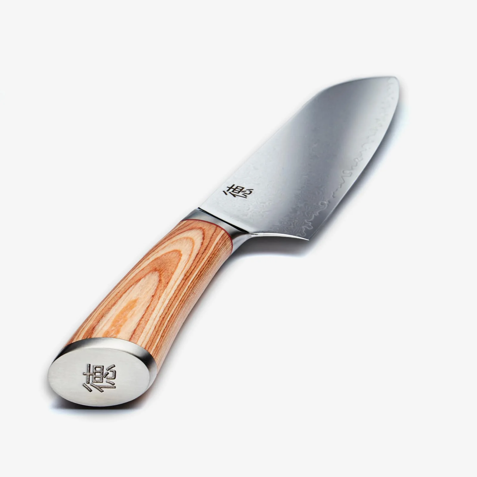 Haruta 7 Inch VG10 Japanese Damascus Steel Santoku Knife with Wooden Handle & Scabbard